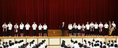 まずは、12・13日の大会に出場する卓球男女・剣道男女の選手の皆さ