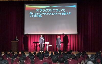 今年度は、Tシャツの有色化・スラックス導入等について、生徒が真剣に話