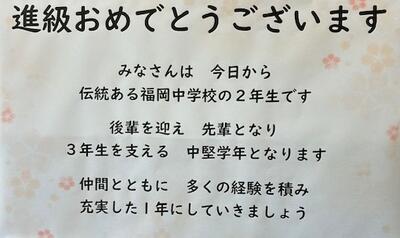 進級した2年生、3年生の皆さんには、それぞれ最高学年、中堅学年として