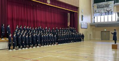 終業式に先立って開催した生徒集会では、それぞれの学年から歌の発表がありました。
