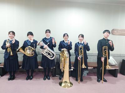 響け金管6重奏~会場を魅了する演奏~ 投稿: 校長 (18:41) 1月17日(土)に盛岡市民文化ホールで開催された岩手県吹奏楽 アンサンブルコンテストに出場した金管6重奏のメンバーが見事に金賞に輝き ました。 当日の演奏は、この曲の魅力であるそれぞれの楽器の特徴ある音色と旋 律が見事に融合し、素敵な演奏として会場を魅了しました。 惜しくも東北大会出場は逃しましたが、非常に誇らしい成績を収めました。 Tweet -