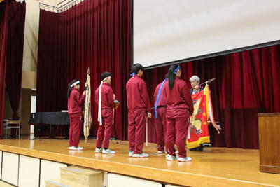 体育祭結団式 投稿: 校長 (07:57) 4月26日(火)に、体育祭結団式を行いました。 昨年度の優勝旗等の返還の後、各組団長に団旗を手交しました。 各組団とも団長の指示の下、スローガンの確認およびリーダーの紹介を行い、 鬨(とき)の声を高らかにあげました。 3年生を中心に各組団とも意欲に満ち溢れています。 各組団のスローガンを発表する4名の組団長 Tweet -