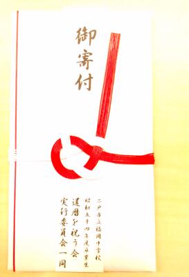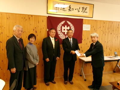 【御礼】寄付金をいただきました 投稿: 校長 (16:16) 10月21日(火)、昭和54年度卒業生「還暦を祝う会実行委員会」の方々が お見えになり、生徒のために役立ててほしいと14万円を寄付してくださいました。 寄付金は、同窓会費に繰り入れ生徒の活動に活用させていただきます。 心より感謝申し上げます。